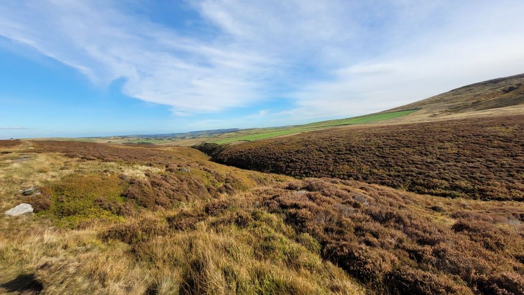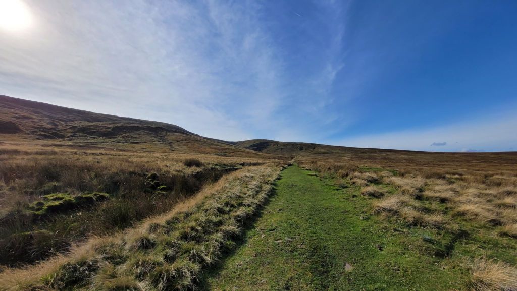 From here, we continued up and across the moor, on a long, straight path. The wide open expanse allowed views of distant green fields inhabited sparsely by sheep and huge swathes of blue sky. We barely encountered a soul, which while peaceful, did mean we had nobody to save us five minutes by pointing out the stile next to one locked gate along the way!