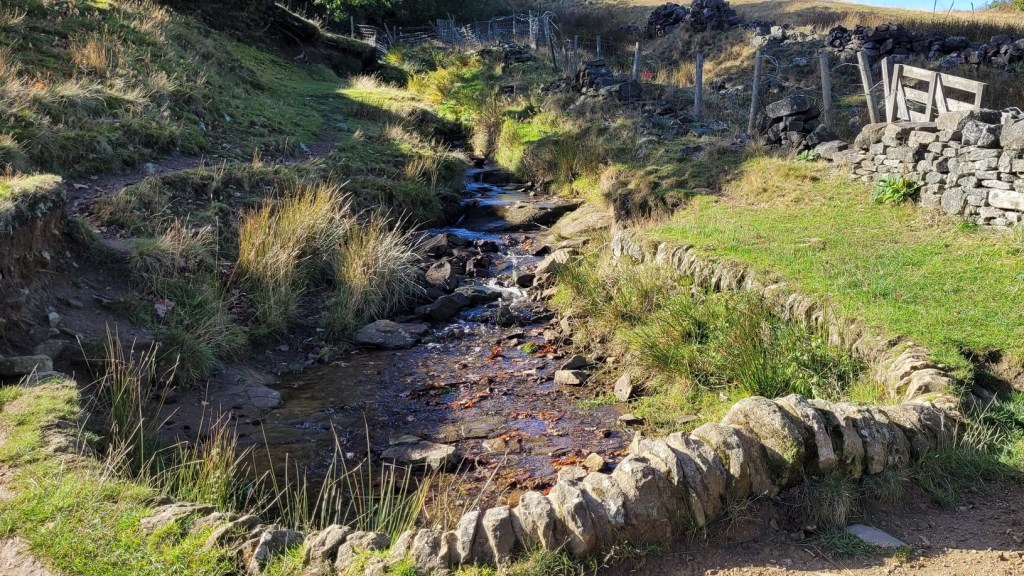 After a short while, we took a turn in the path to cross through a huge patch of heather, eventually reaching Blackpool Bridge. This narrow wooden structure allows passage across the babbling Marsden Clough stream and saves your feet from getting wet (or ‘wetter’, this wasn’t the driest ramble). A scramble up a steep section of hill followed, before we doubled back on ourselves and began the hike back to the other side of the reservoir, flanked by the heathery banks of the stream on our right. On rounding the edges of the water, we found ourselves back at the car, after 2 ½ hours and a total of 9.5km. We were now ready for lunch and a beer.