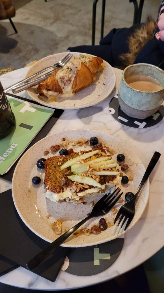 On our last day in the city, we sleepily head to ToiToiToi in the city’s old town for a much-needed coffee and spot of food. Not only do the flat whites massively hit the spot, but it offers up one of the best light breakfasts we’ve ever had, our simple choices very lovingly prepared. We share a cheese croissant, packed with oozy gruyere and topped with a sprinkling of fresh oregano. For the dessert portion of breakfast, we split a piece of carrot cake, which is presented with thin slices of fresh apple, blueberries, a scattering of caramelised nuts and a drizzle of syrup, sprucing up what is already a seriously good slice.