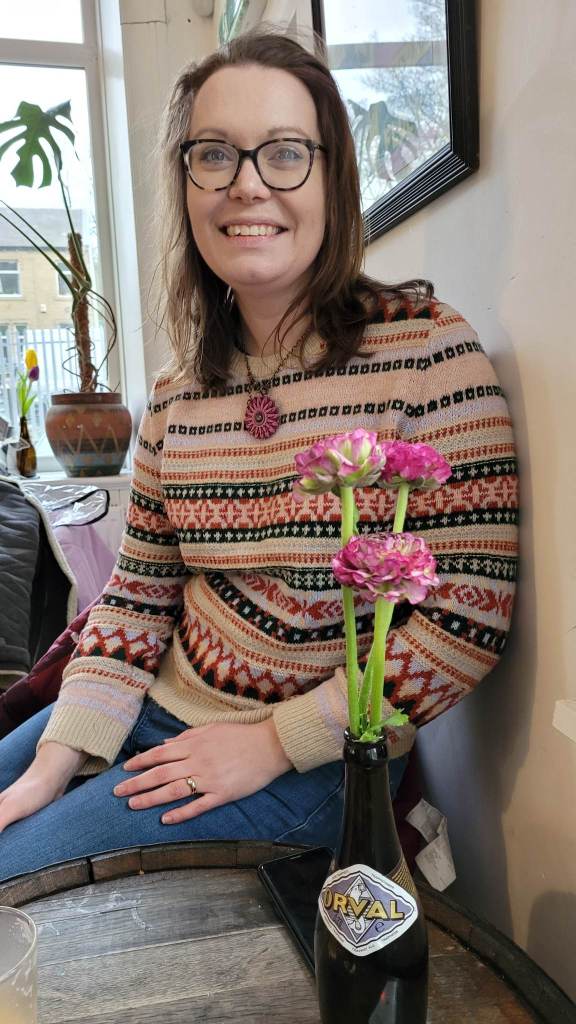 Having eaten, we decide it’s worth forgoing the walk back to Marsden station to enjoy a liquid desert. After all, there’s a bus we could catch, so it seems worth it. Kate opts for a third of roasty imperial stout Whatever, Whatever. For me, it’s a small glass of a gorgeously sweet cherry wine, as advertised on the bar top.